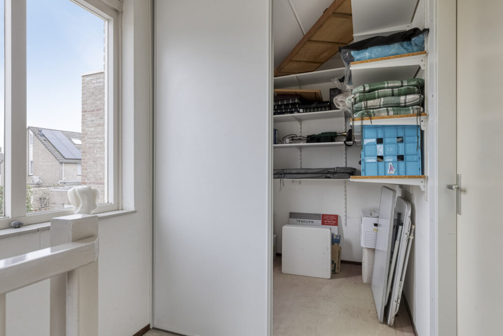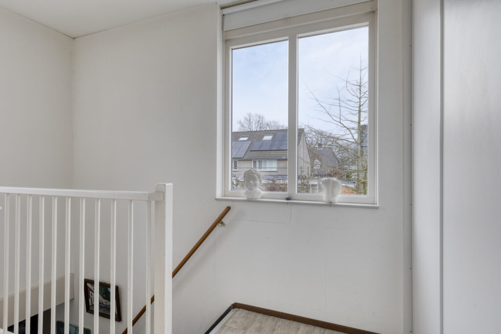 Lichte overloop voorzien van laminaat, toegang tot de 2 slaapkamers en bergruimte.