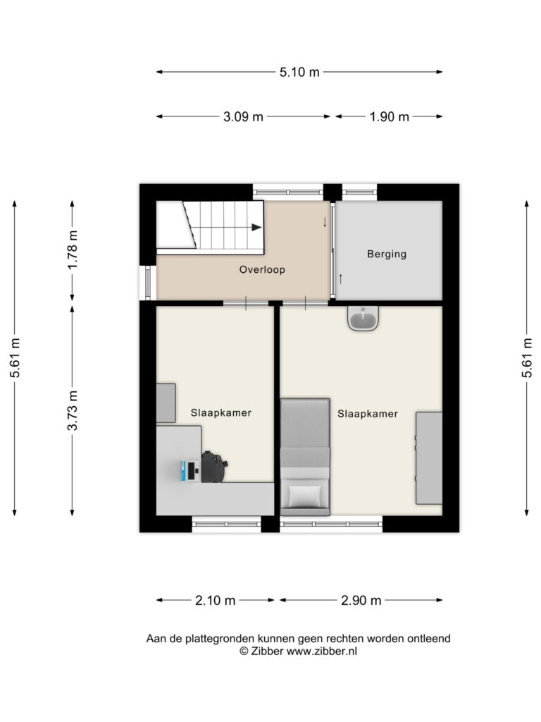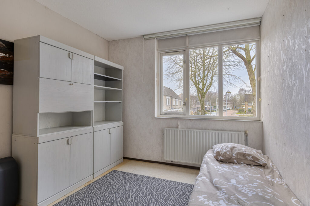 Slaapkamer 2 van (2,10m*3,73m) 7,8m² is voorzien van behangen wanden.