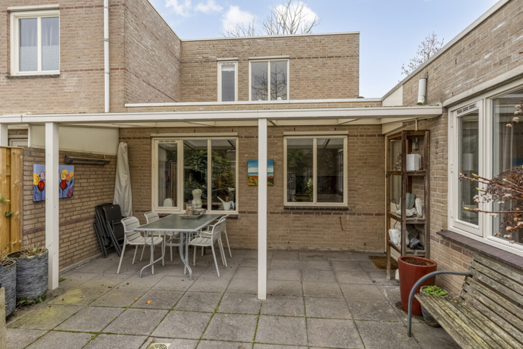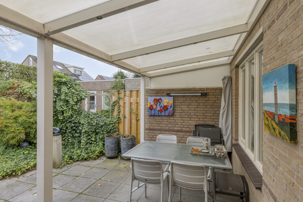 – Privacy-biedende aangelegde achtertuin met terrasoverkapping.