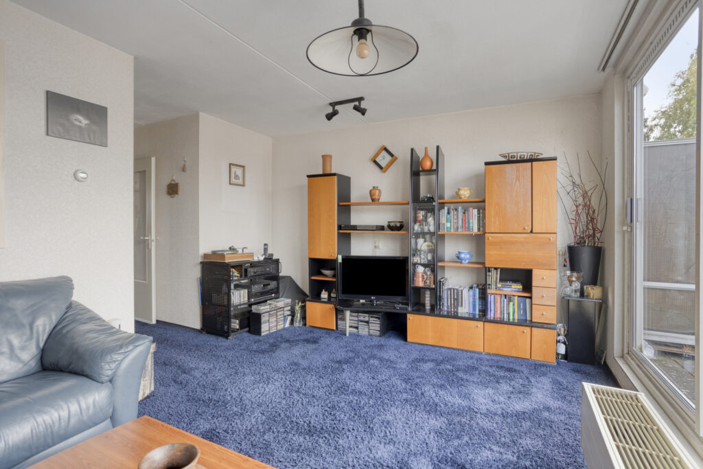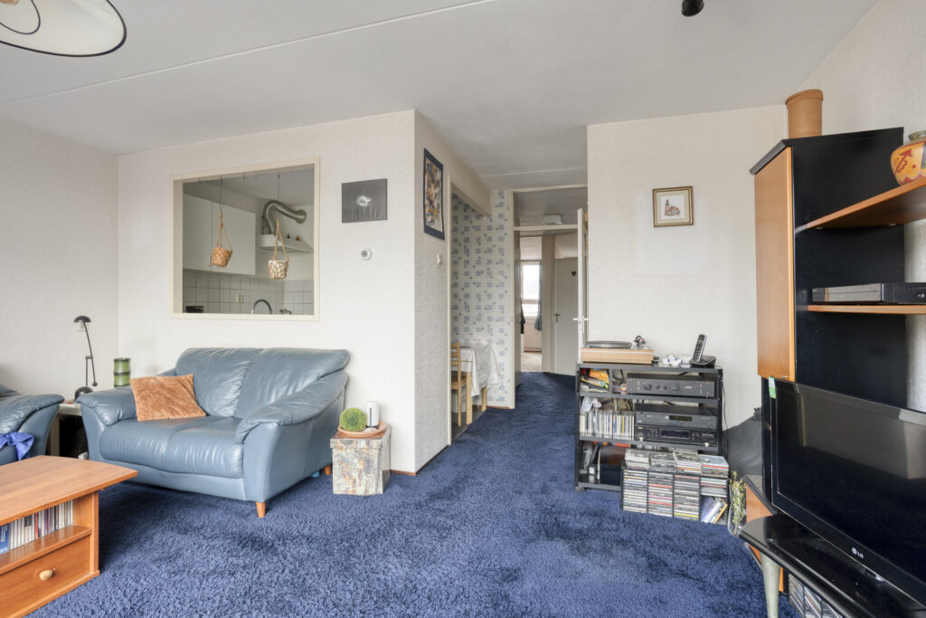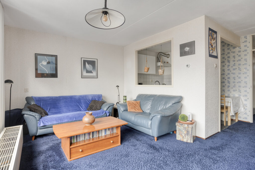 Een ruime, lichte woonkamer met een ruime halfopen hoekkeuken van ca. 31m². De woonkamer heeft een directe toegang via een schuifpui naar het fraaie zonneterras van ca. 10m² op het zuidwesten.