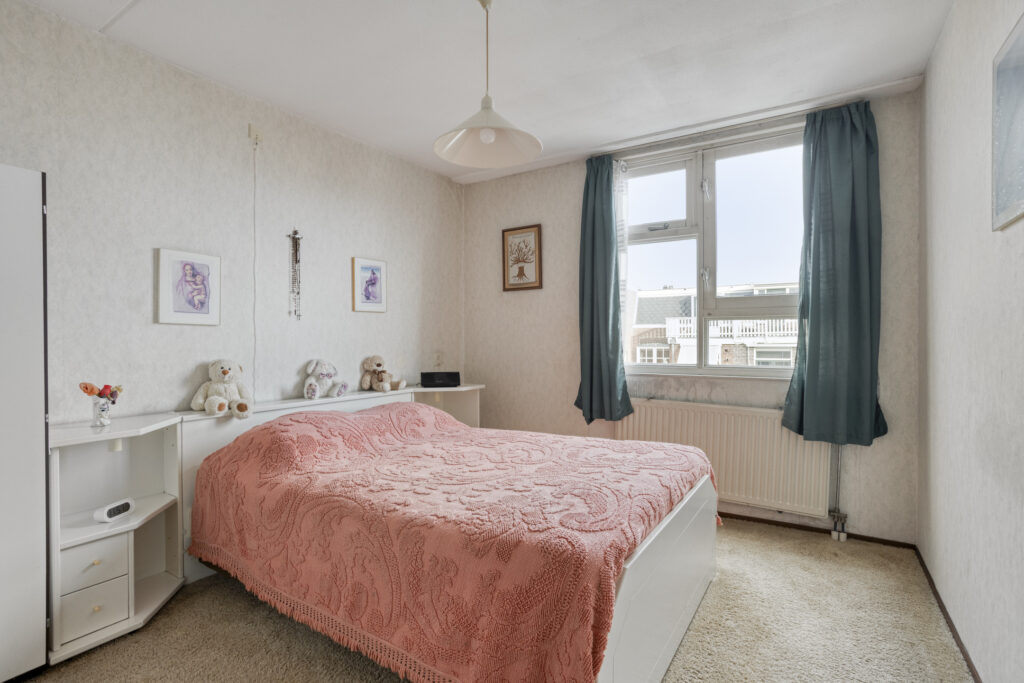 Aan de voorzijde van het appartement bevinden zich twee slaapkamers van ca. 9m² en ca. 12m². Tenslotte is de ruime badkamer voorzien van een douchehoek, wastafel en mechanische ventilatie.