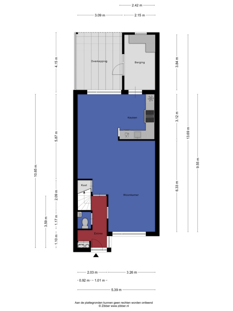Begane grond: entree, hal, meterkast, toilet met fontein, trapopgang, toegang naar de woonkamer, trapkast, semi-open keuken v.v. inbouwapparatuur, toegang naar de bijkeuken (voormalige berging) en toegang naar de achtertuin.