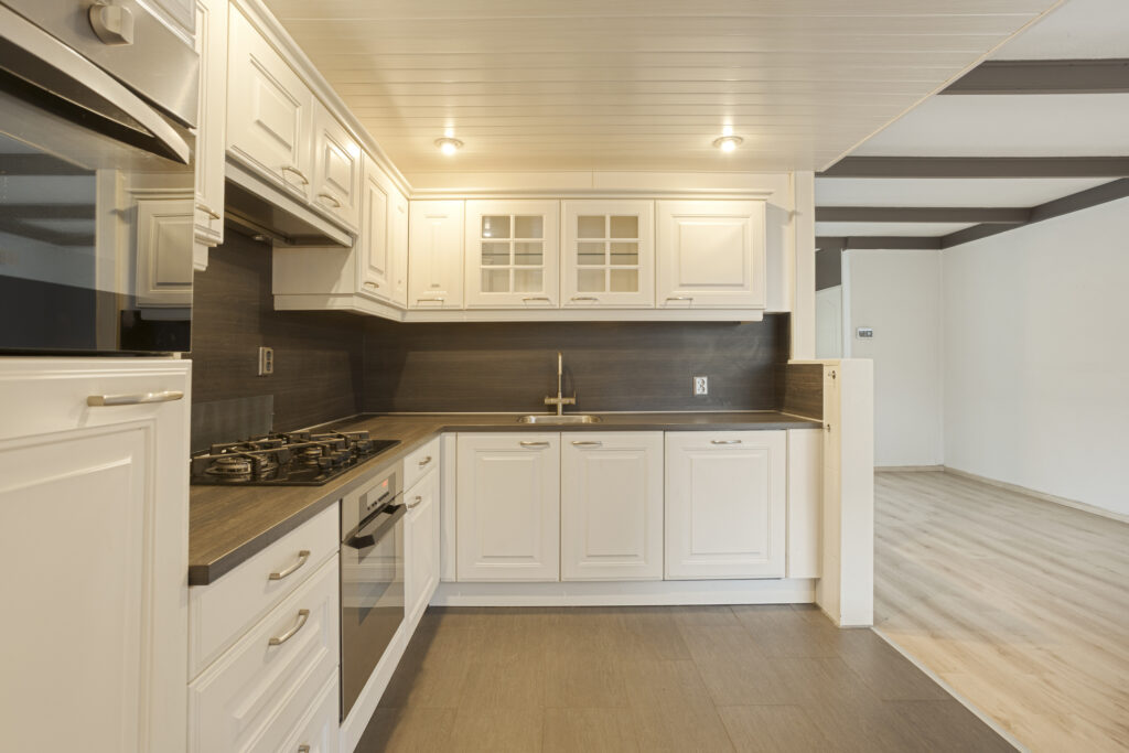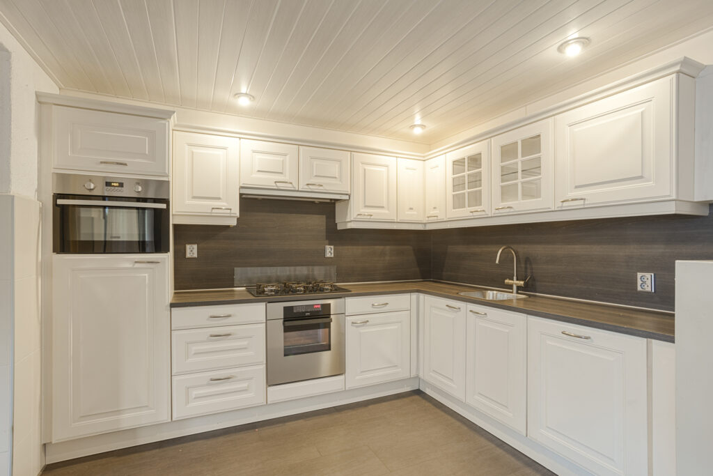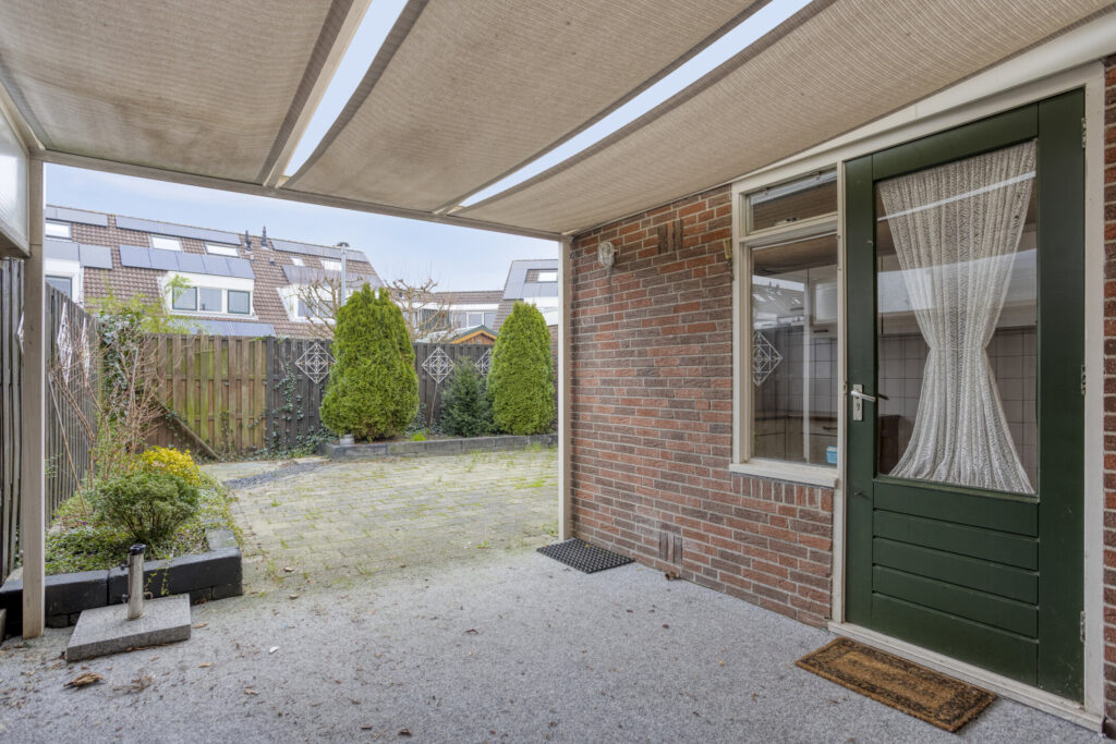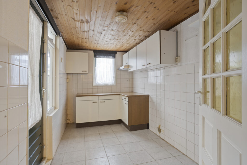 – aangebouwde bijkeuken/berging met deur naar de achtertuin;