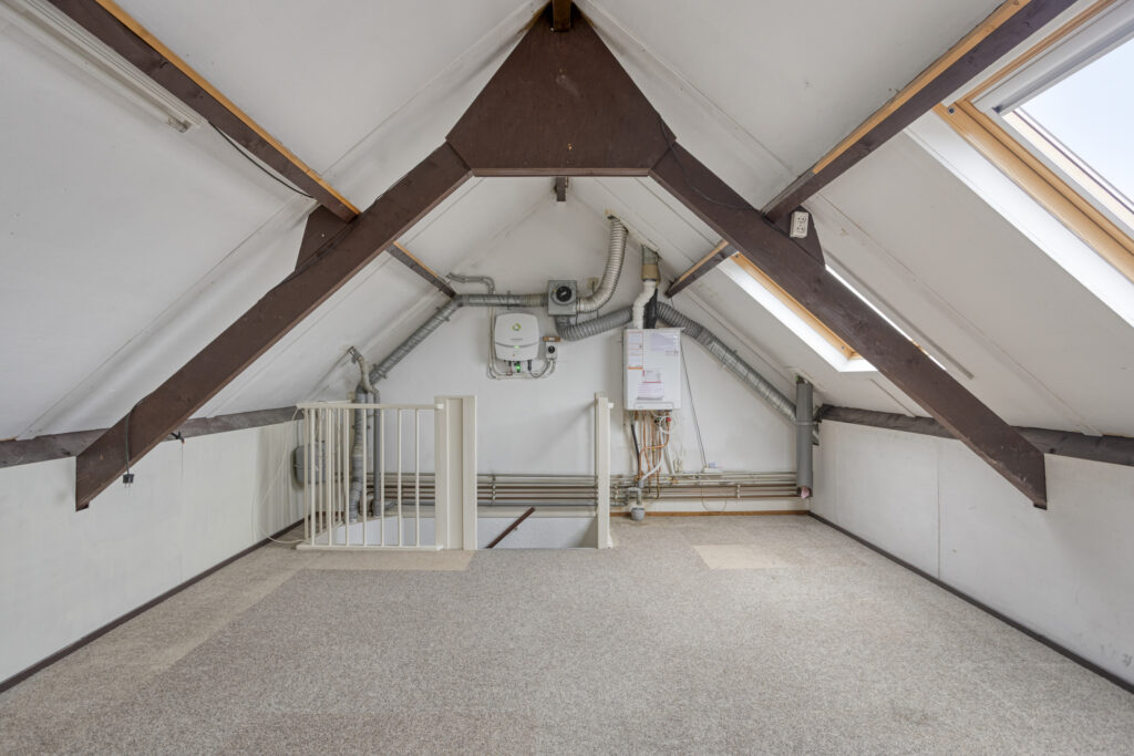 Via een vaste trap bereik je de tweede verdieping. Deze ruime verdieping biedt de mogelijkheid om een volwaardige vierde slaapkamer te realiseren, maar is ook uitstekend geschikt als werkruimte of hobbykamer. Hier bevinden zich tevens de cv-ketel en de mechanische ventilatie.
