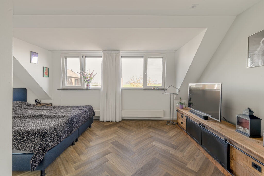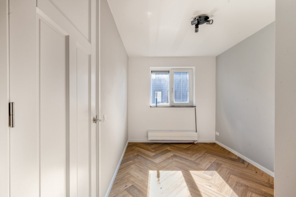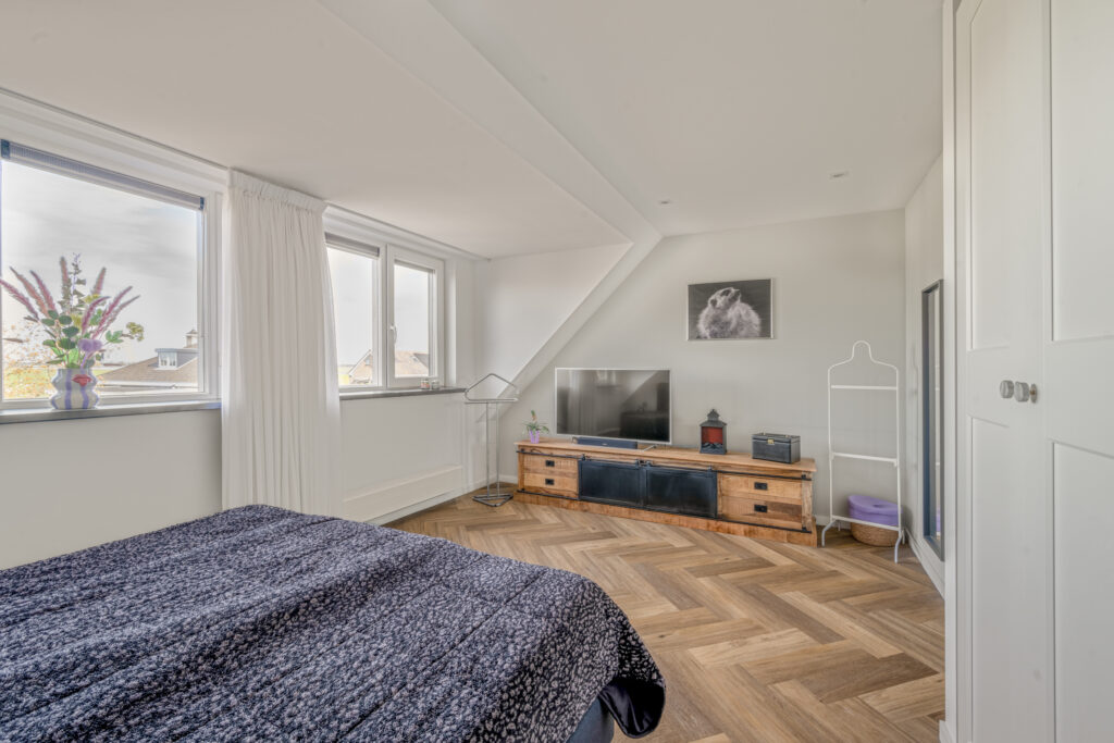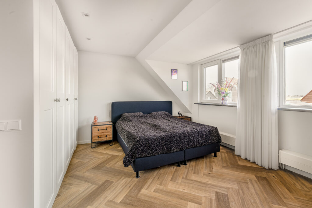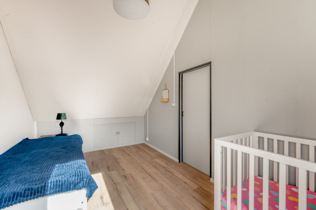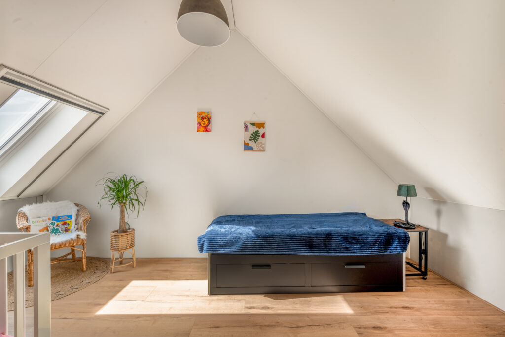 De tweede verdieping biedt een ruime overloop met was- en stookruimte en een derde, volwaardige slaapkamer met een groot dakraam – ideaal als slaap-, werk- of hobbyruimte.