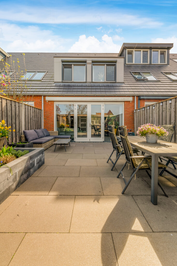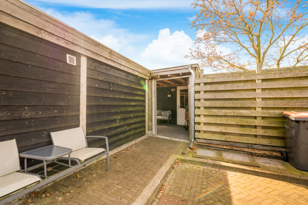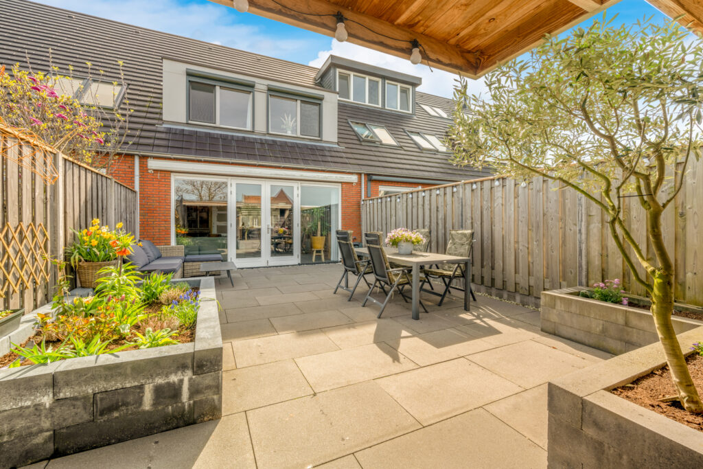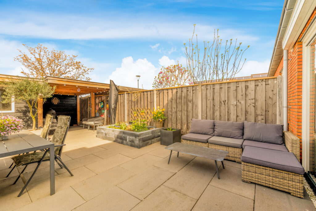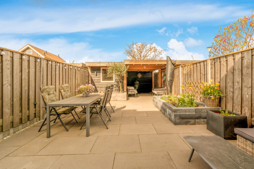 Ook buiten is het genieten: de onderhoudsvriendelijke achtertuin op het westen is modern aangelegd met strak straatwerk en stijlvolle plantenbakken. In 2020 is er een vrijstaande houten schuur met aangebouwde overkapping geplaatst, waar je tijdens zonnige dagen heerlijk beschut kunt ontspannen.