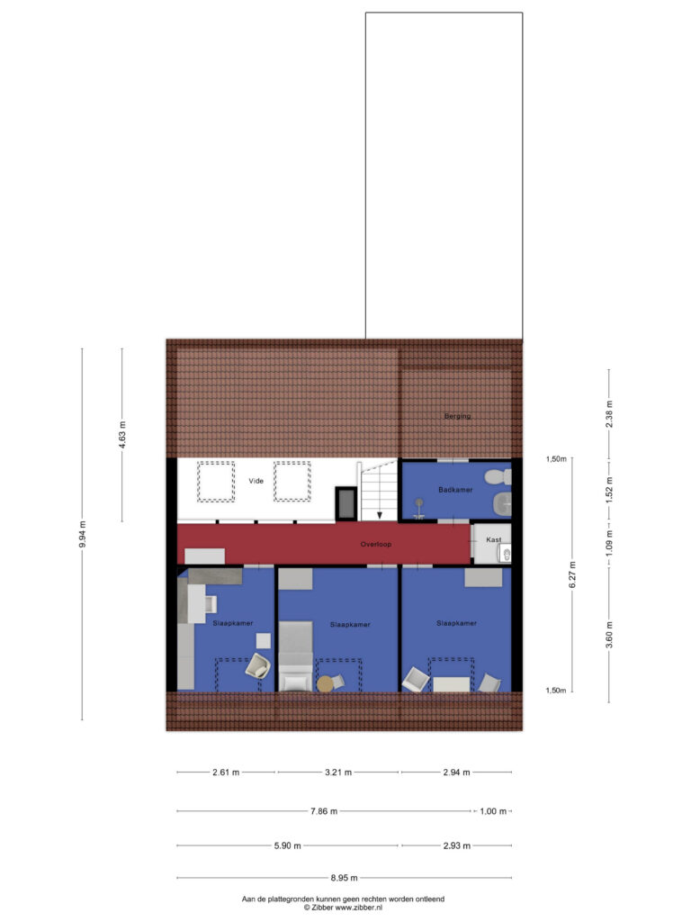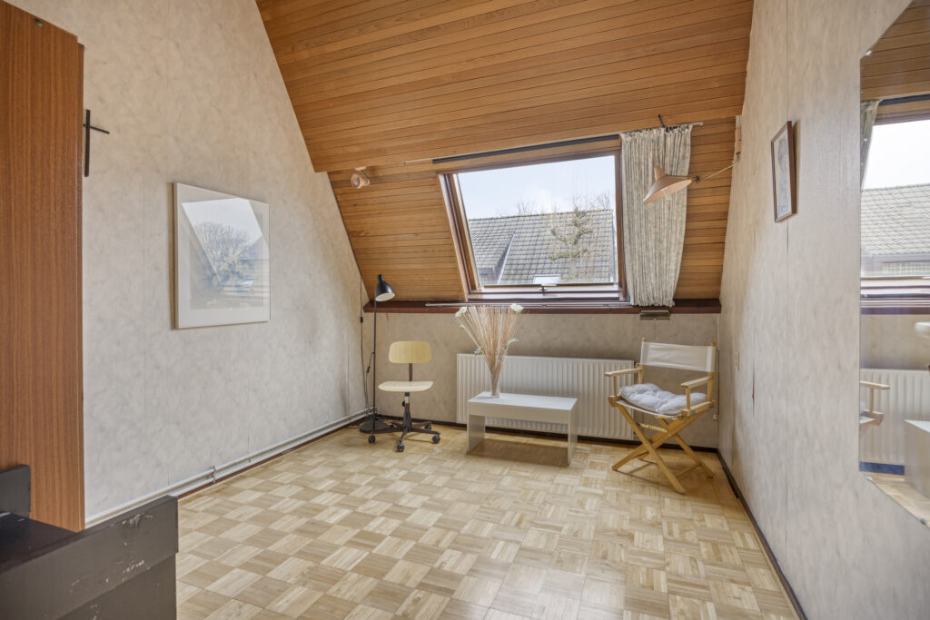 De royale overloop met vide zorgt voor een prachtige verbinding tussen boven en beneden. Hier bevinden zich drie goed bemeten slaapkamers, elk met een groot dakraam en een prettige lichtinval. De hoge nok maakt de kamers extra ruimtelijk.