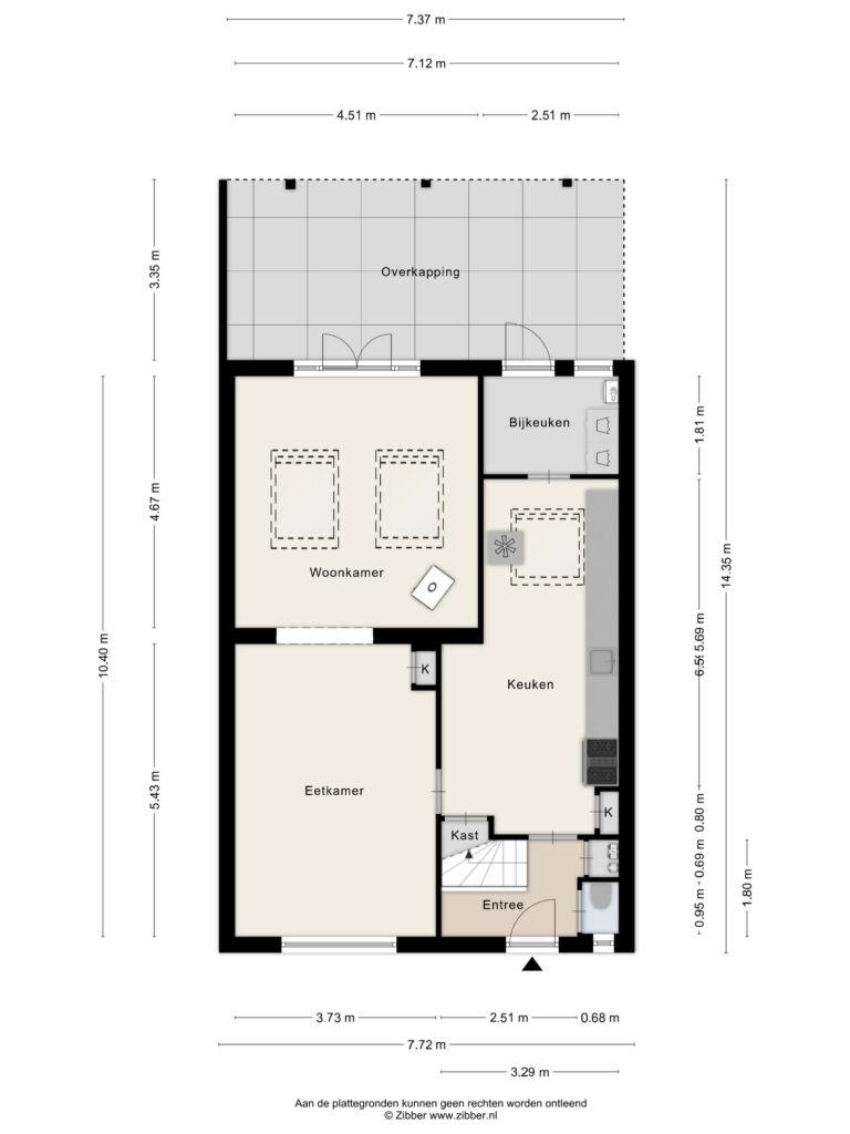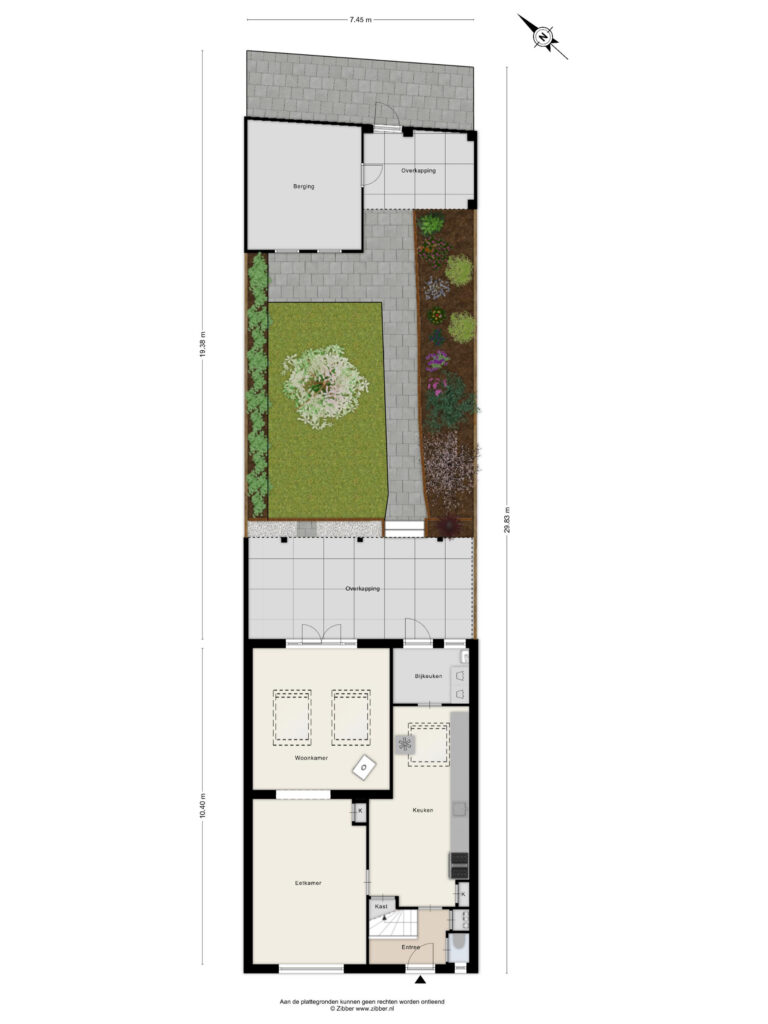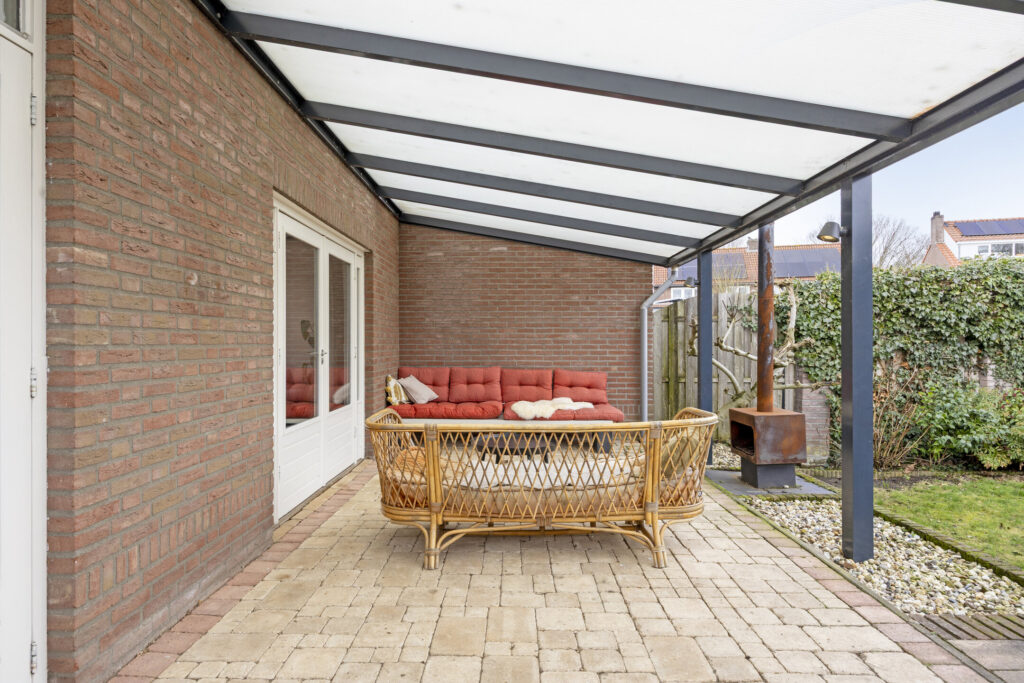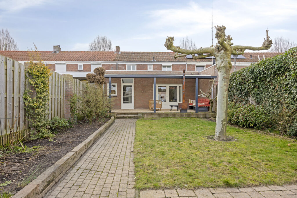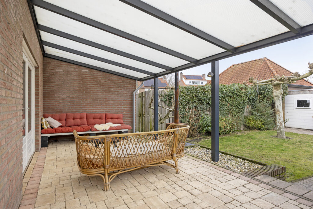 De woning beschikt over een opvallend diepe achtertuin, waar je op elk moment van de dag een fijne plek vindt om te genieten. De overkapping aan de woning zorgt ervoor dat je hier al snel lekker buiten kunt zitten. Achterin de tuin bevindt zich een ruime bergingsschuur met extra overkapping, perfect voor hobby, opslag of fietsen.