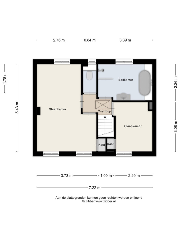 De overloop biedt toegang tot twee ruime slaapkamers, een badkamer en een separate toiletruimte.