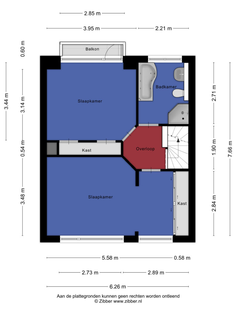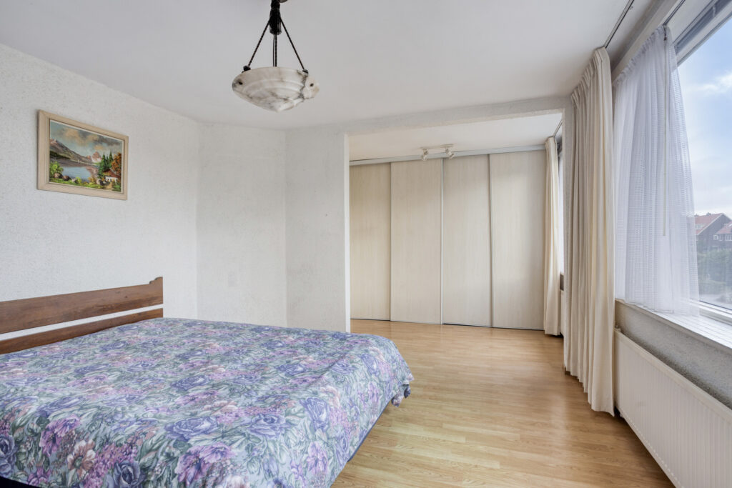 Eerste verdieping: overloop, twee slaapkamers (met de mogelijkheid om een derde slaapkamer te creëren) waarvan één toegang heeft tot een balkon en een badkamer v.v. toilet, wastafel, ligbad en douchehoek.