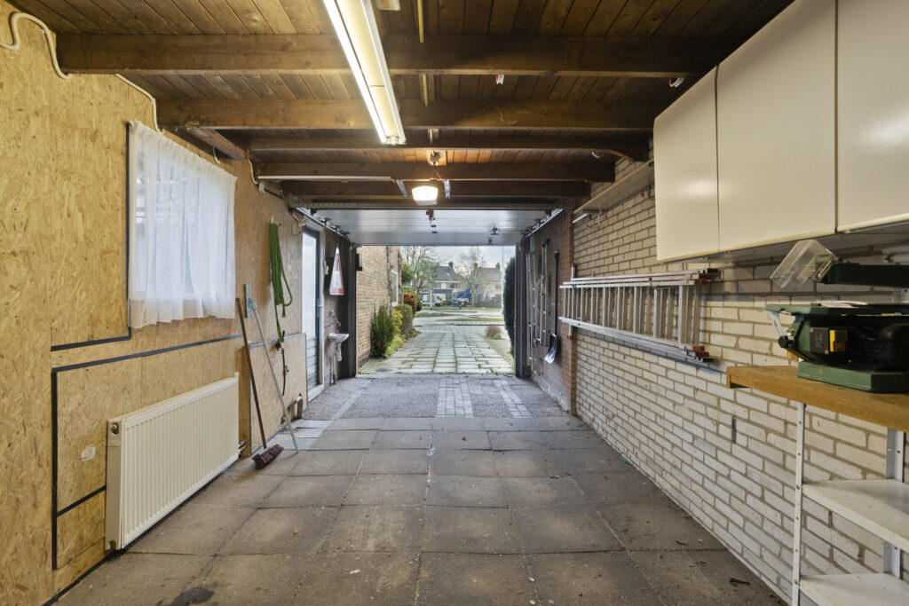 De achtertuin ligt heerlijk op het westen, perfect voor lange zomerdagen en avonden in de zon. Naast de woning staat de ruime, in steen opgetrokken garage van circa 24 m², volledig uitgerust met elektra, water, verwarming en een elektrische deur. Parkeren kan bovendien gewoon op eigen terrein, een fijne luxe in deze woonwijk.