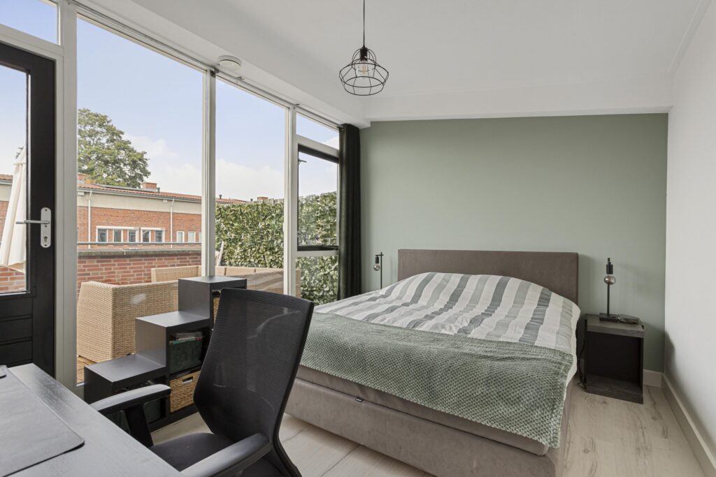 Beide slaapkamers zijn voorzien van een laminaatvloer, stucwerk wandafwerking, hardhouten kozijnen met HR ++ beglazing en geven een zeer ruimtelijk effect dankzij het schuine dak (3m. hoogte!); slaapkamer I (ca. 4.83 x 2.10m.) thans in gebruik als kinderkamer; (ouder) slaapkamer II (ca. 3.25 x 4.07m.) met toegang tot het dakterras en voorzien van airconditioning.