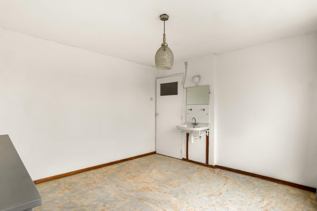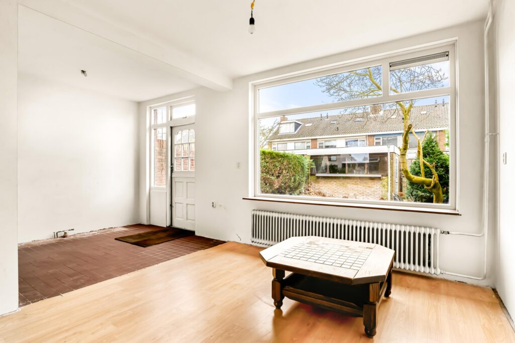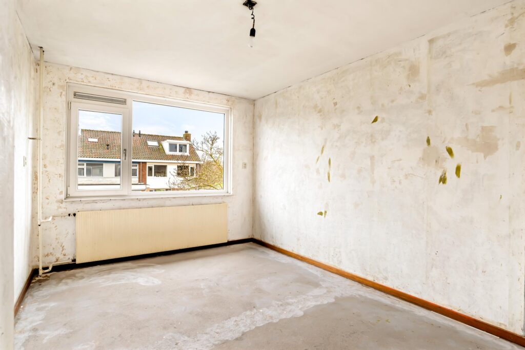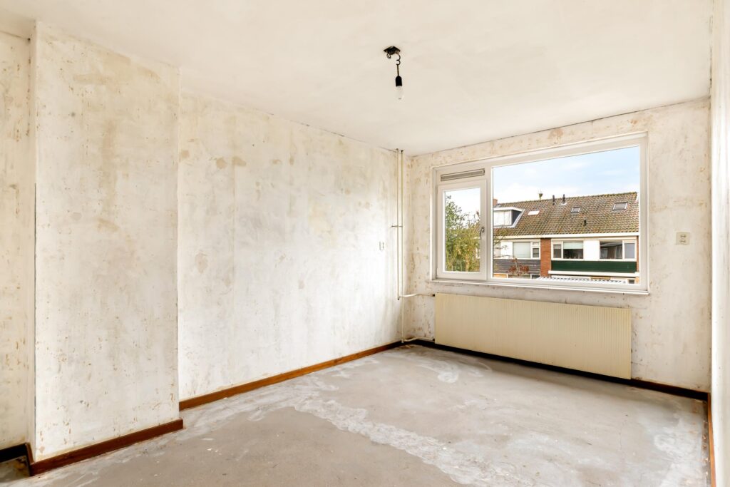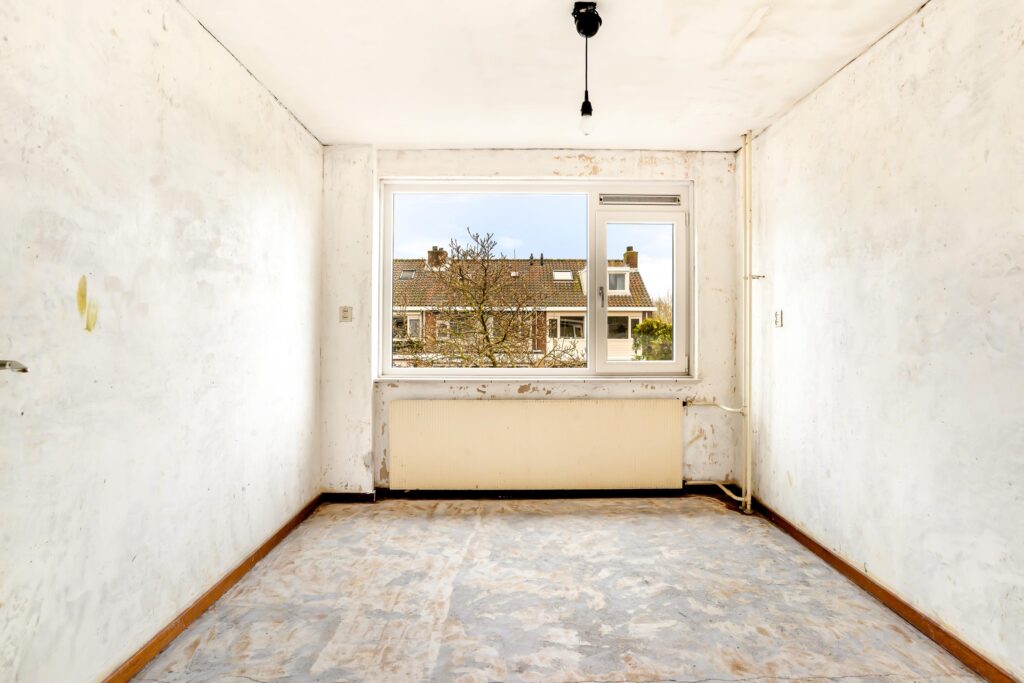 – de woning wordt opgeleverd zonder keuken en dient aan de binnenzijde gemoderniseerd te worden
