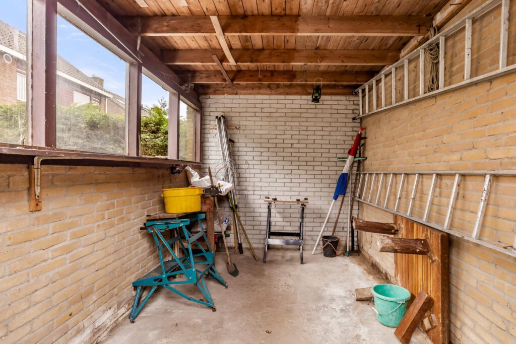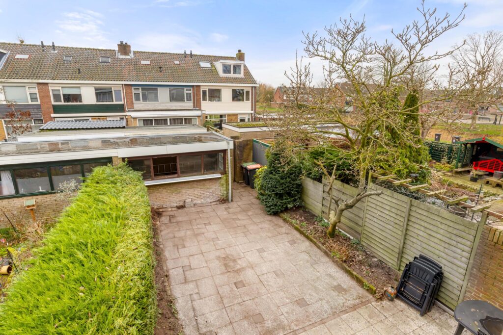 De achtertuin op het zuidoosten is een heerlijke plek waar u de hele dag van de zon kunt genieten. Achterin de tuin staat een vrijstaande stenen berging, ideaal voor fietsen, tuinmeubelen en extra opslag.