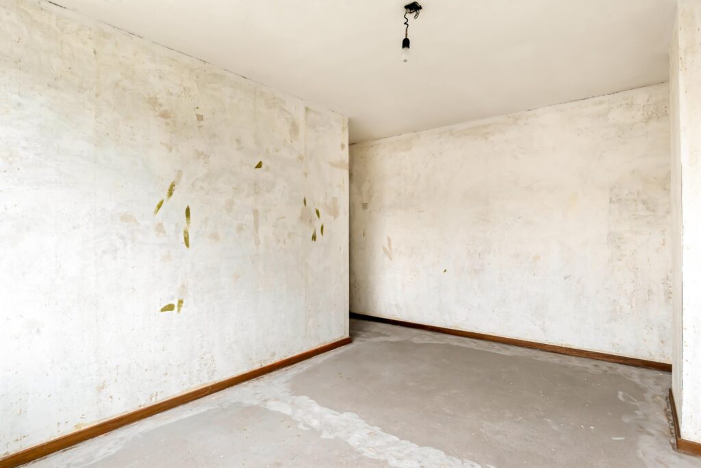 – in 2025 zijn op de begane grond alle wanden en plafond glad gestuukt