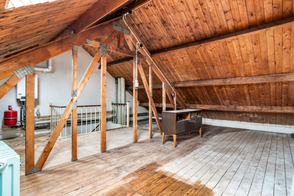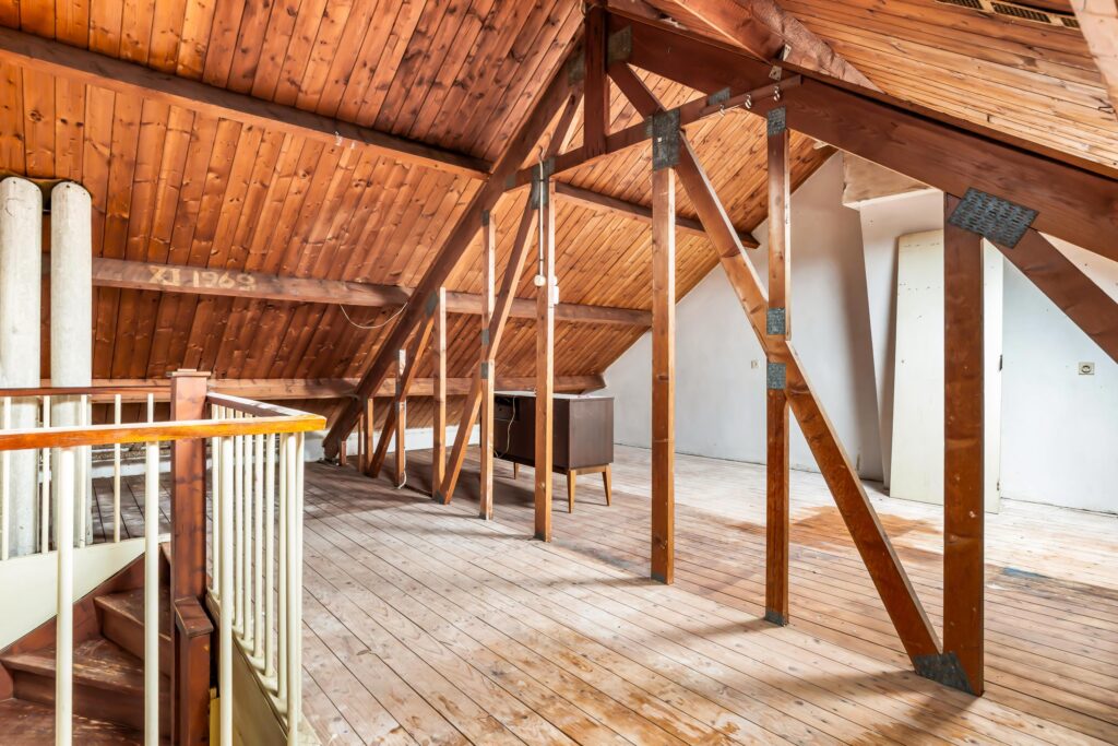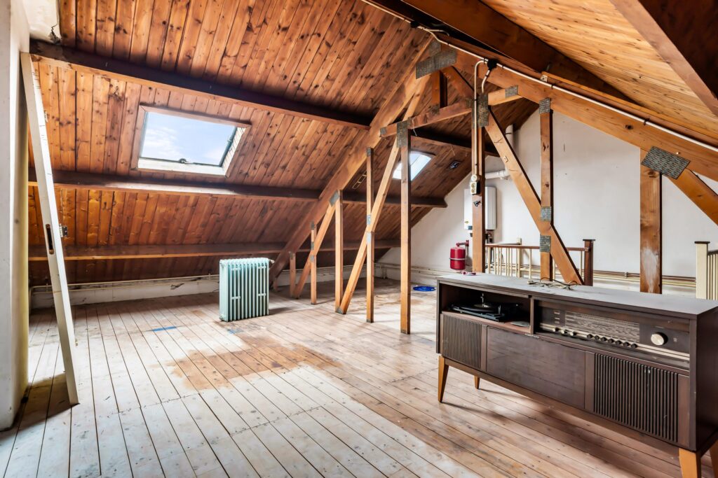 Via een vaste trap bereikt u de tweede verdieping. Deze verdieping is nog geheel vrij in te delen en biedt volop mogelijkheden. Denk aan het creëren van twee extra slaapkamers gecombineerd met een was- en stookruimte – de potentie is er.