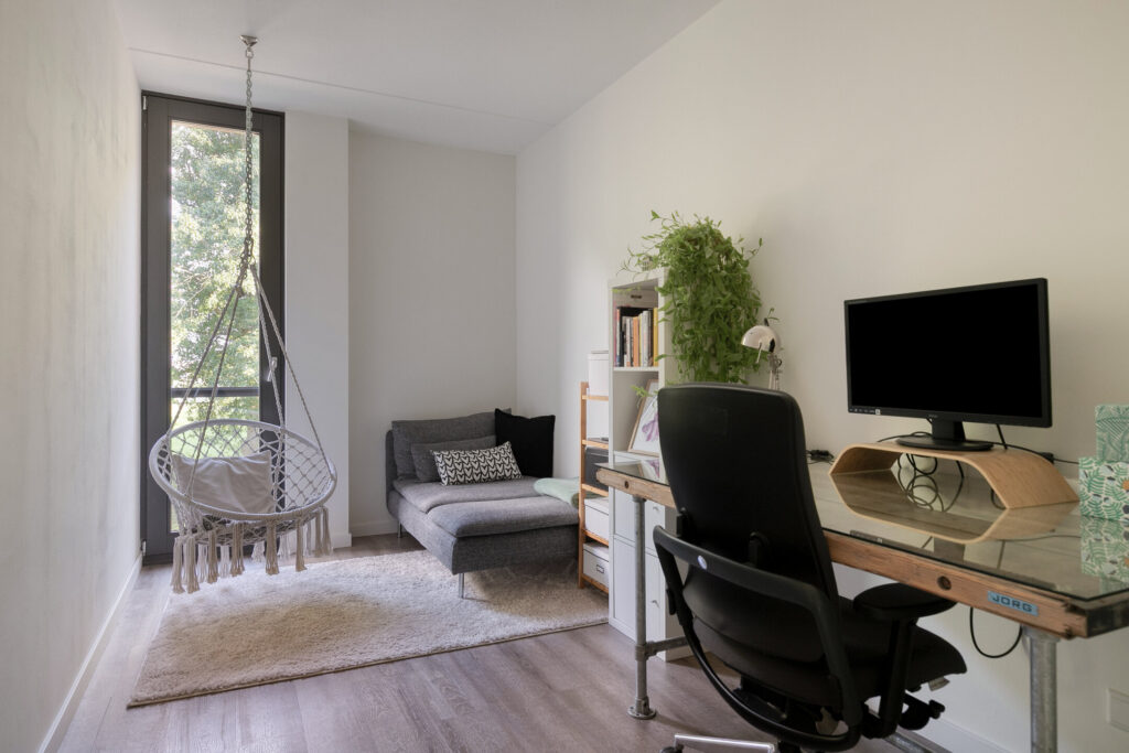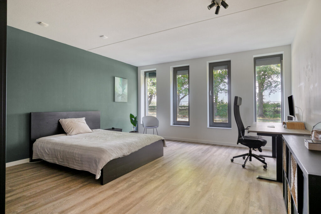 Vanuit deze kamer heeft u uitzicht op groen en het achtergelegen fiets- en wandelpad.