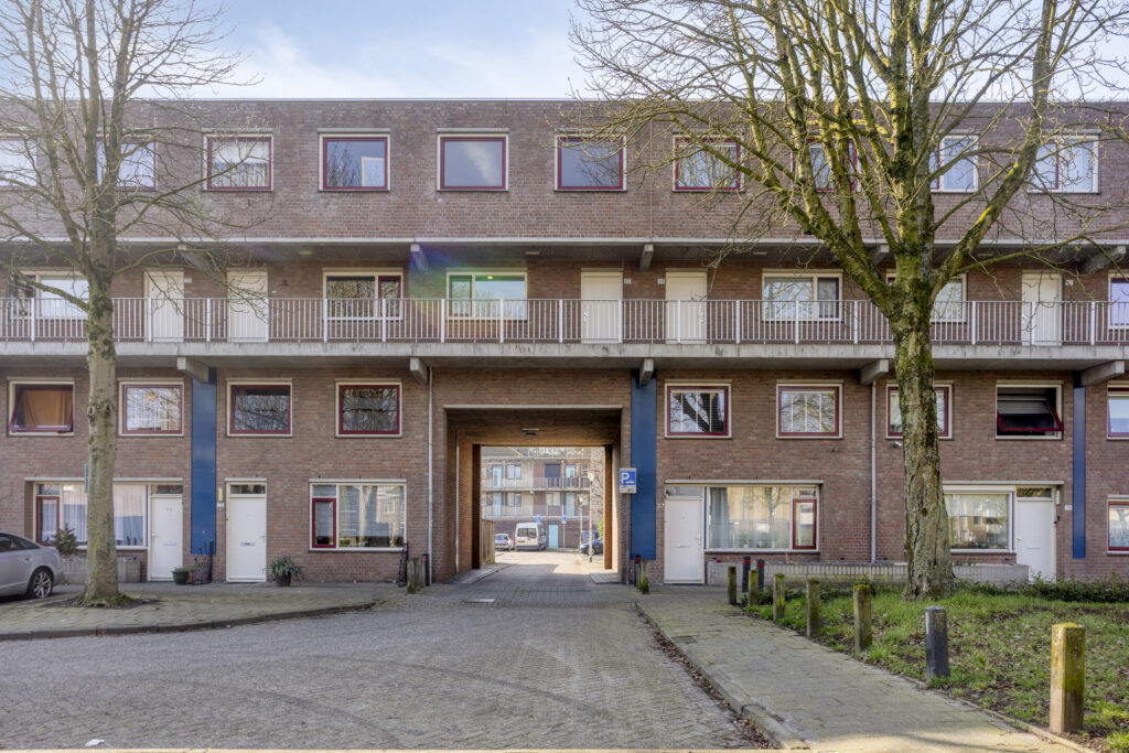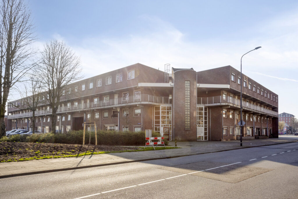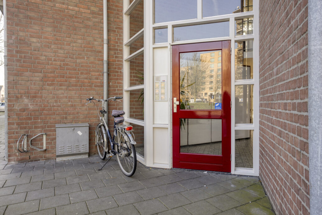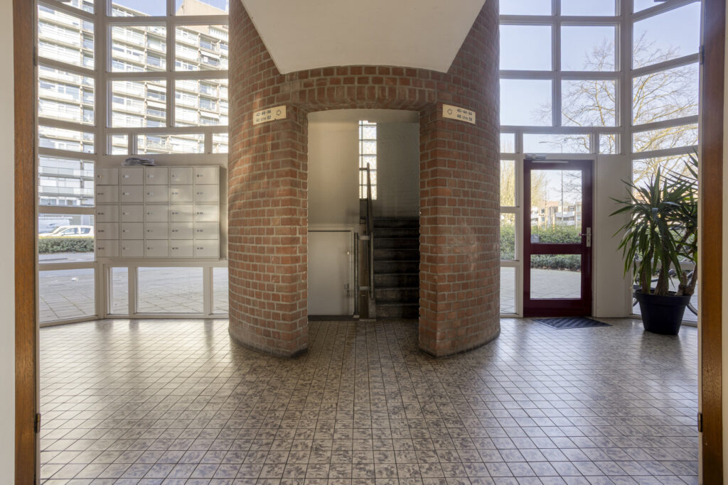 Entree appartementencomplex met bellentableau en brievenbussen. De fraaie en lichte entreehal geeft middels het trappenhuis toegang tot de galerij naar het appartement.
