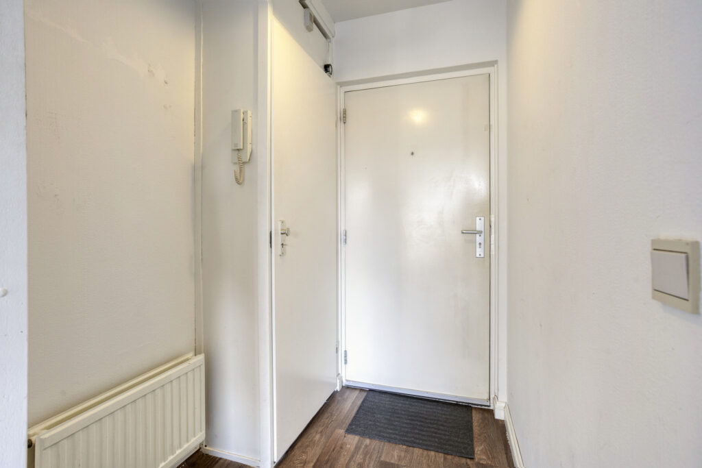 De hal is voorzien van de meterkast, garderobemogelijkheid en een vinyl vloer.