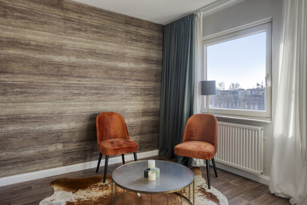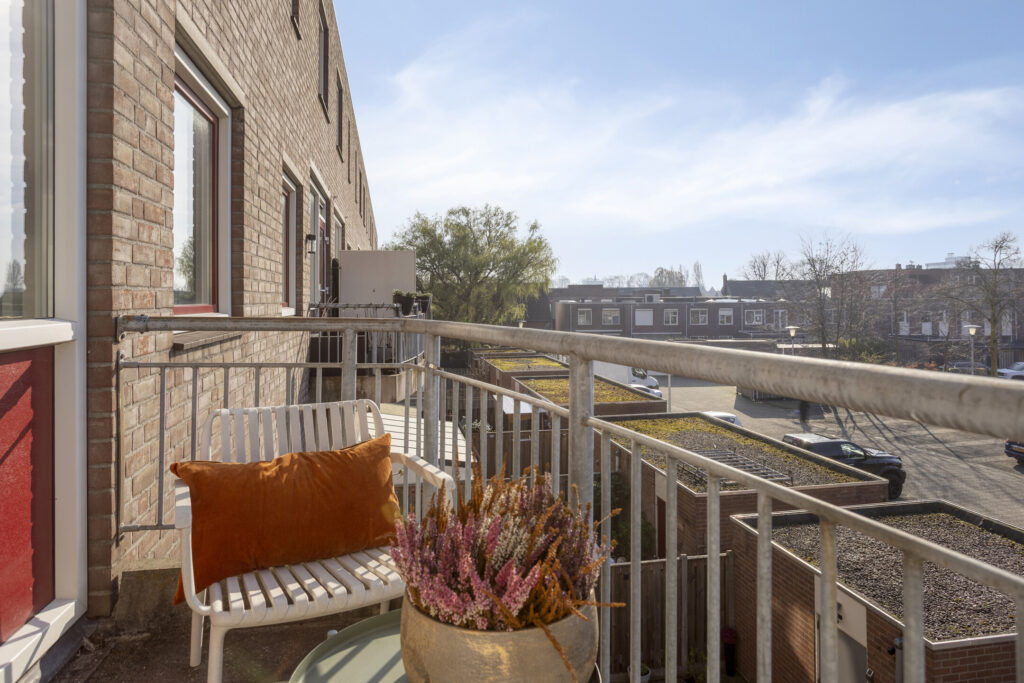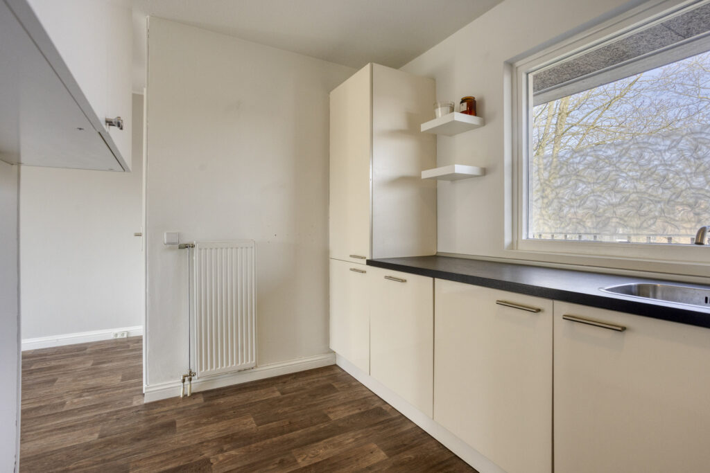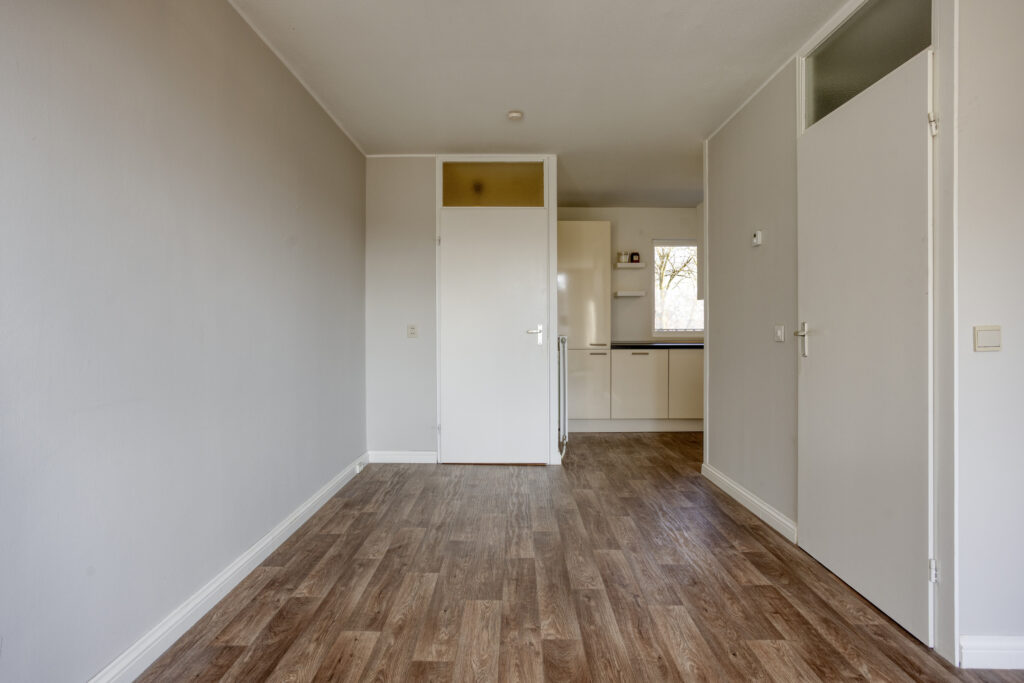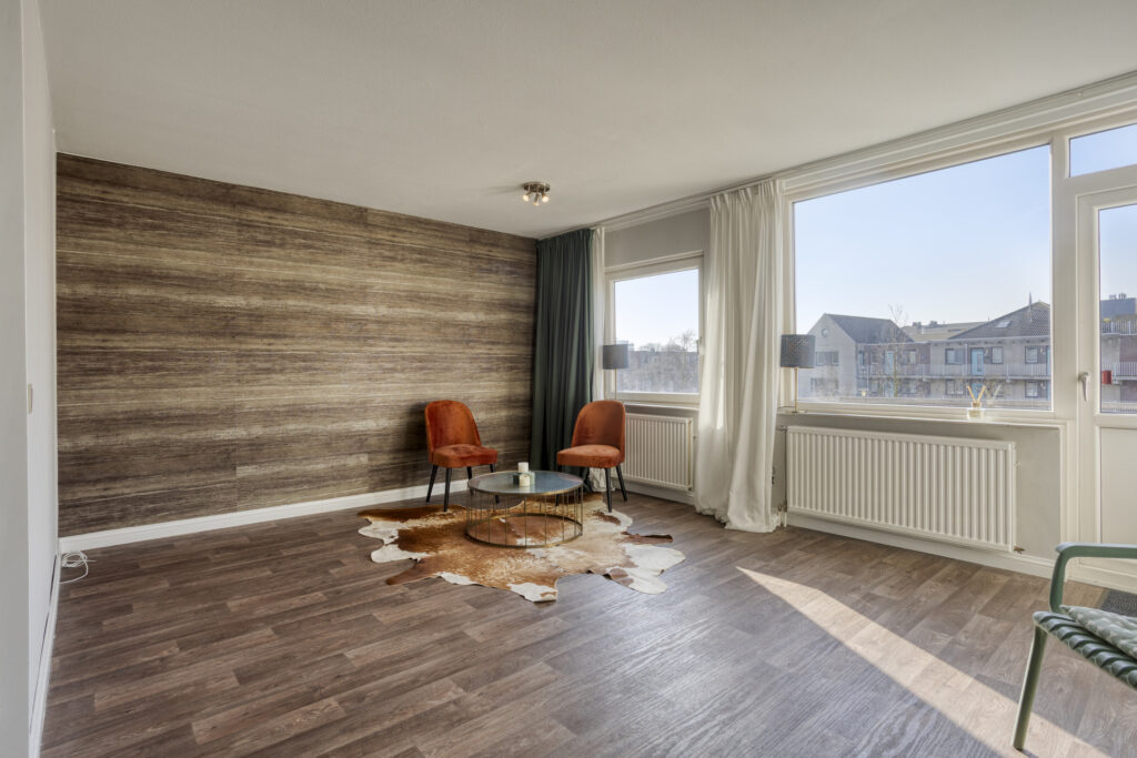 De ruime en lichte woonkamer geniet door zijn ligging op het zuiden een fijne lichtinval. De vloer is afgewerkt met vinyl en via een openslaande deur is het balkon op het zuiden bereikbaar. Dit balkon is een heerlijke plek om buiten te kunnen genieten van een kopje koffie of thee in de zon.