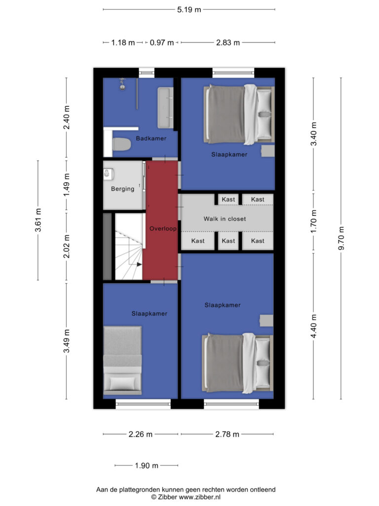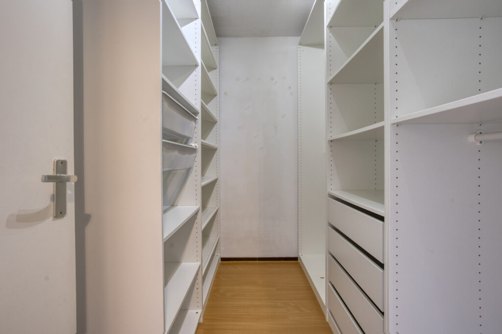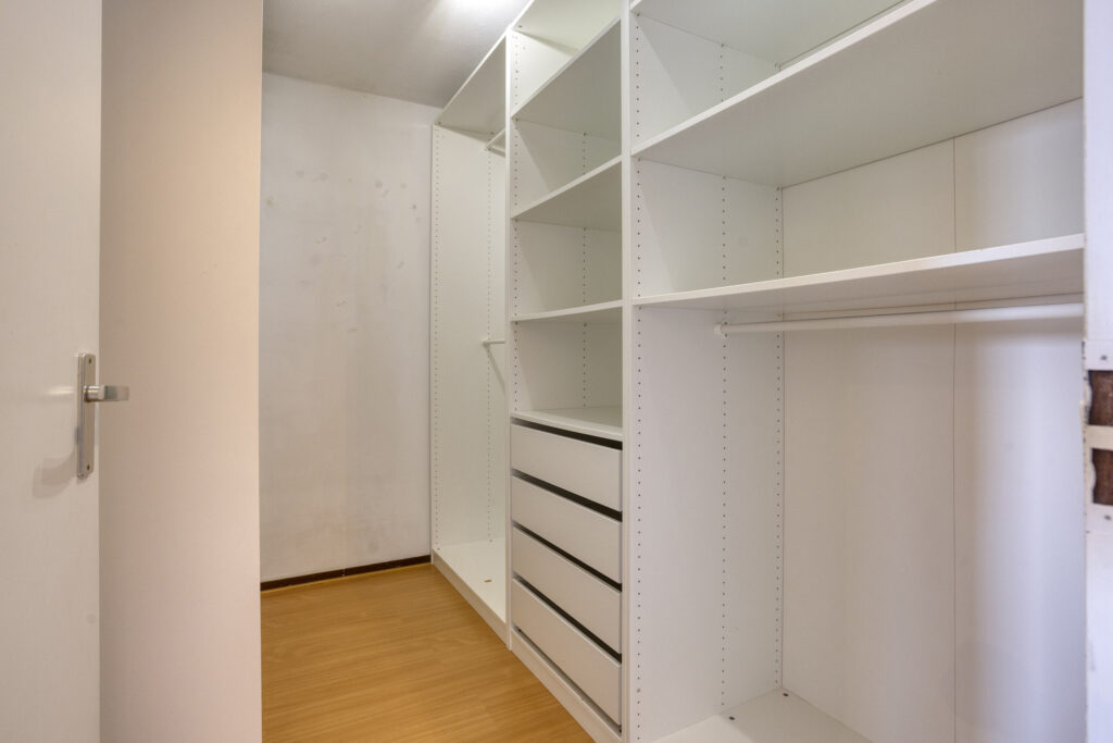 De kastenkamer beschikt over een ruime kast (blijft achter). Ook hier is een laminaatvloer aanwezig.